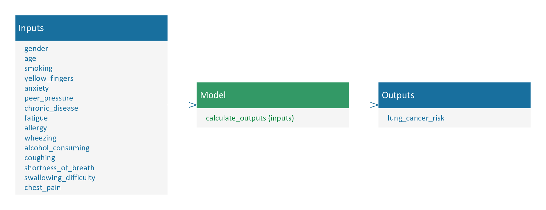 To build the model, a hospital creates a dataset containing lung cancer risk factors for 309 patients.