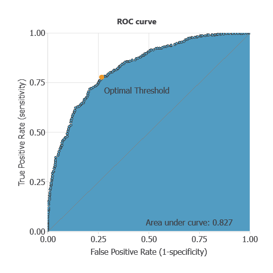 The AUC obtained is 0.826, showing that the model performs well at distinguishing between patients with and without diabetic retinopathy.
