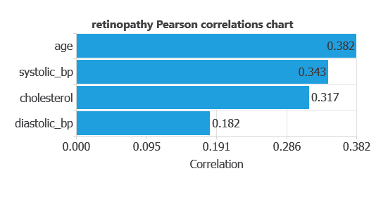 The input-target correlations indicate which patient features most influence the development of diabetic retinopathy and, therefore, are most relevant to our analysis.