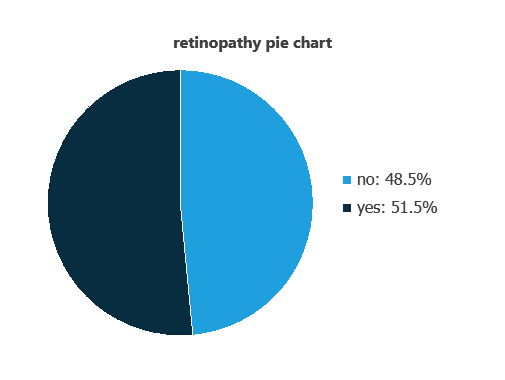 Variable distributions can be calculated, and the pie chart shows the number of patients with and without diabetic retinopathy.