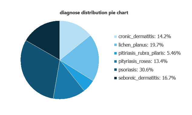 diagnose (categorical) – six possible classes (Psoriasis, Seborreic dermatitis, Lichen planus, Pityriasis rosea, Chronic dermatitis, and Pityriasis rubra pilaris)
