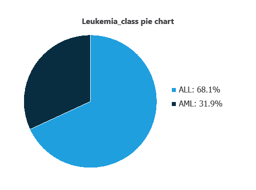 As depicted in the image, ALL cases represent 31.95% of the samples, while AML cases represent approximately 68.06%.